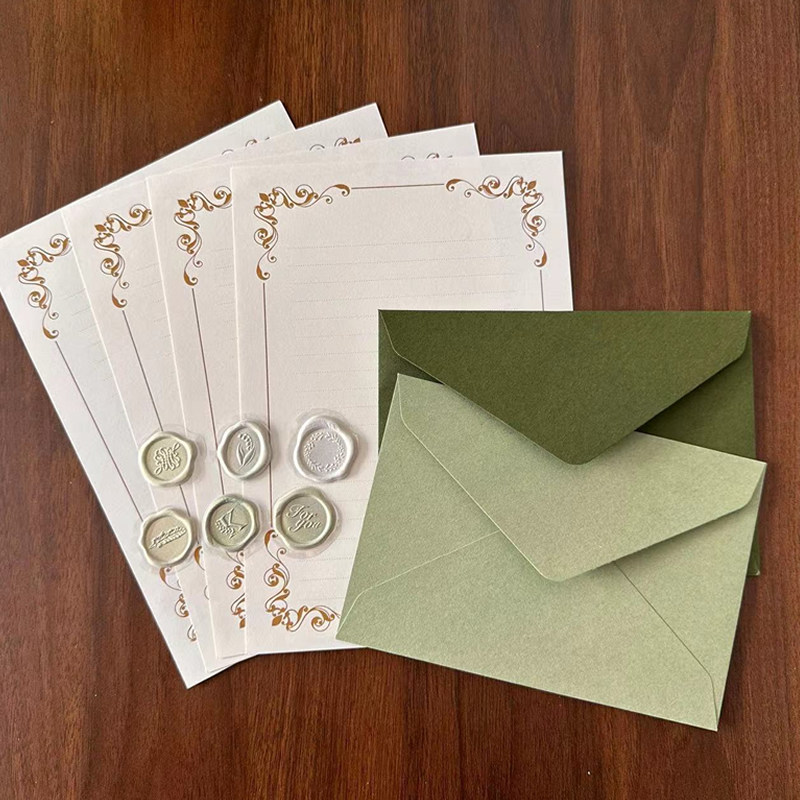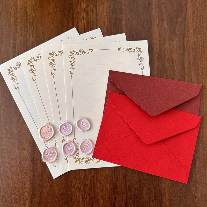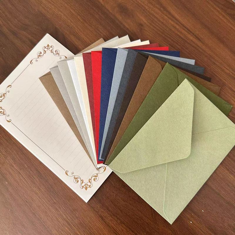 可定制LOGO彩色红色牛油果绿色C6明信片高级感西式套装信封信纸